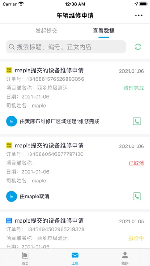 客户可使用APP一键申请报修,客户端可自己新增车辆信息,客户只需提供维修的基本信息和拍照,经公司审批后,专业技工会根据拍照指引拍摄维修现场的照片,即可完成维修的报价给客户负责人,让整个过程透明化;最后由我们专业技工来全程协助司机处理维修,让司机安心出行。