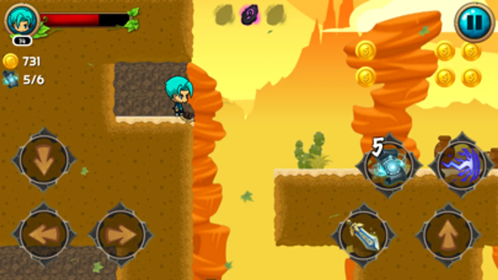 Being a cool game, Legend Warrior is a platform game that comprises the essence of indie games and RPG adventure games. As you upgrade your character, you end up having many boss fights, causing rampage throughout the realm. Equip your hero however you want, there are dozens of character customization options available. Chose best sword and armor, but remember - don't put a cup on your head instead of a helmet. You’re a man on a mission to save beautiful princess like in legendary hero games. Moreover, this is an offline RPG, which means that you can play this platformer 2d game even offline!