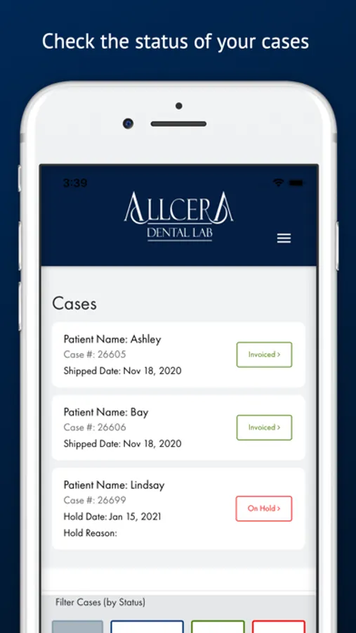 The Allcera Dental Lab mobile app makes working with your favorite dental lab even simpler. You can now view your case status, request materials and pickups, and communicate with Allcera Dental Lab easier than ever before. Using the same login and case information available in your My Account portal, your 24/7 solution to case management is available on your phone.