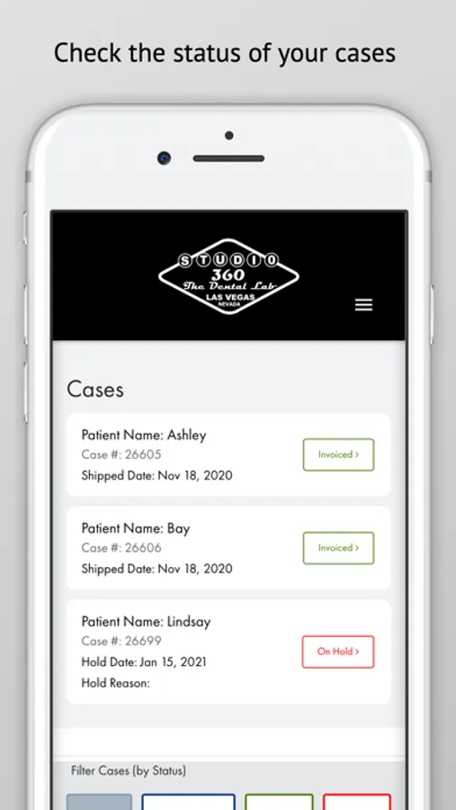 The Studio 360 Dental Lab mobile app makes working with your favorite dental lab even simpler. You can now view your case status, request materials and pickups, and communicate with Studio 360 Dental Lab easier than ever before. Using the same login and case information available in your My Account portal, your 24/7 solution to case management is available on your phone.