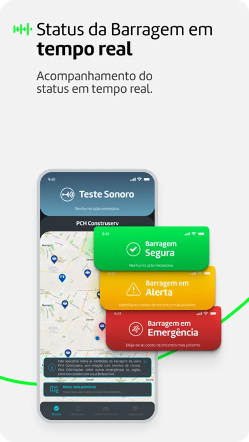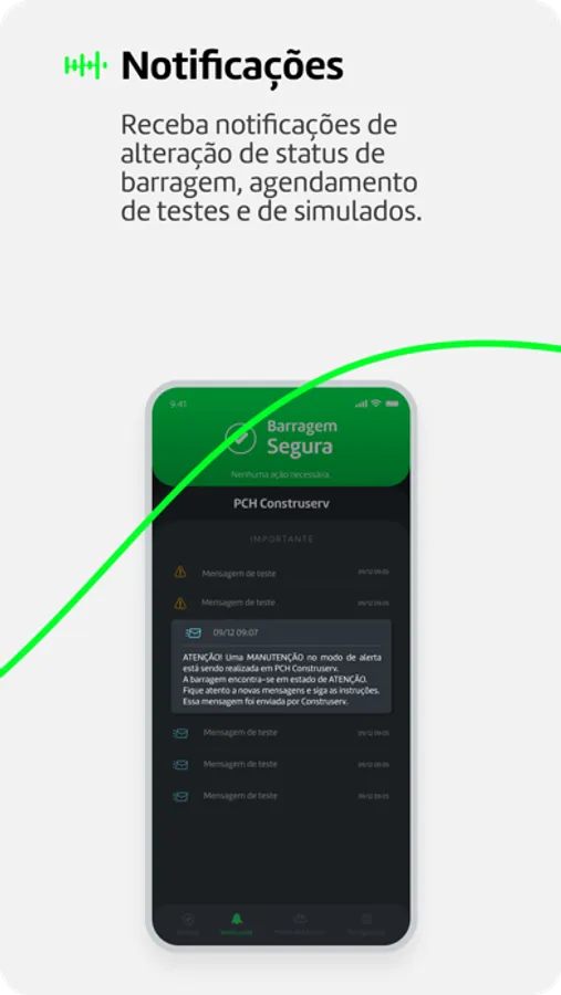 Receba notificações de alterações no status da barragem, agendamento de manutenções e de simulados.