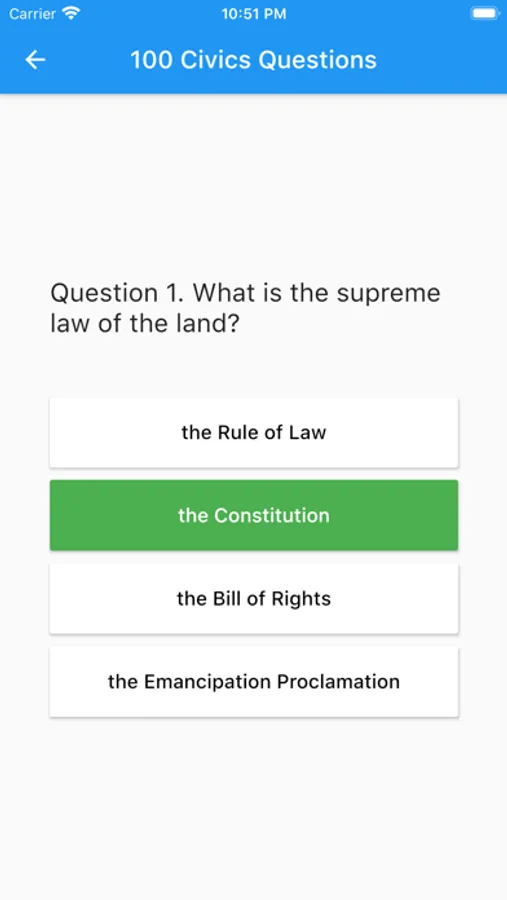 The app is a study tool to help you prepare for the U.S. citizenship interview. In order to become a US citizen, you will need to answer at least 6 out of 10 questions correctly.