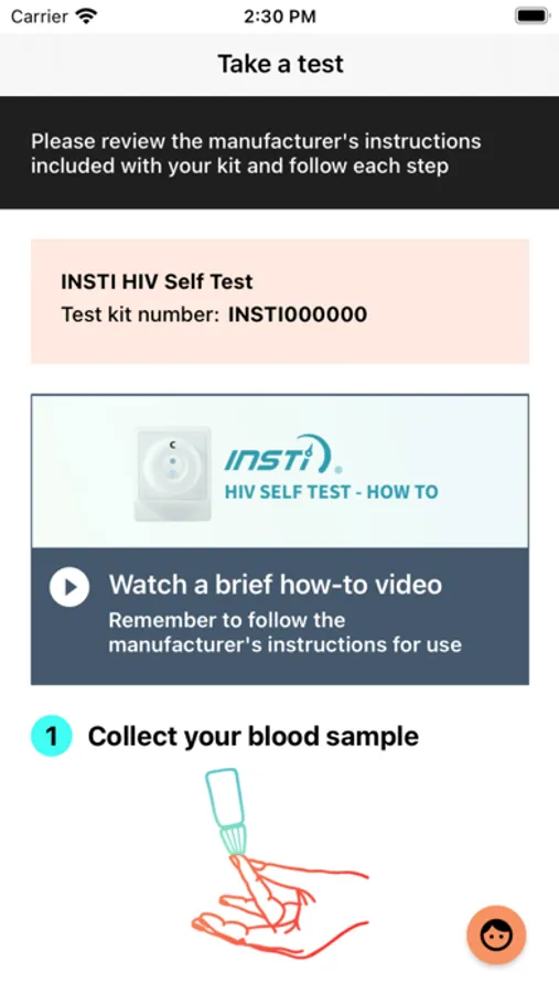 After you answer an initial pre-test survey, you can choose to have self-testing kit(s) delivered to your home or another address, or to pick up a kit at one of our partner pickup locations. Next, once you have your kit(s), the Test app will guide you through testing, ask about your results and suggest follow-up HIV prevention and care resources for you to access.