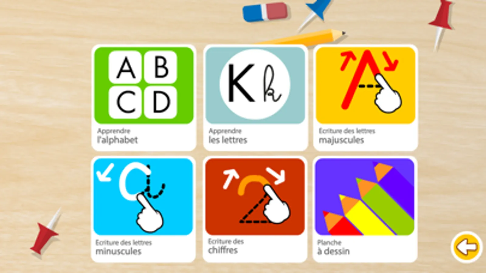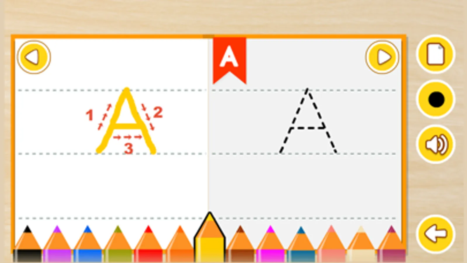 Apprendre a écrire vise à aider à l'écriture correcte les lettres, apprendre la main droite pour écrire et apprendre la prononciation des lettres et leurs ordre alphabétique et un exemple de chaque lettre pour apprendre à écrire des mots, l'application fournit également l'écriture correcte des chiffres