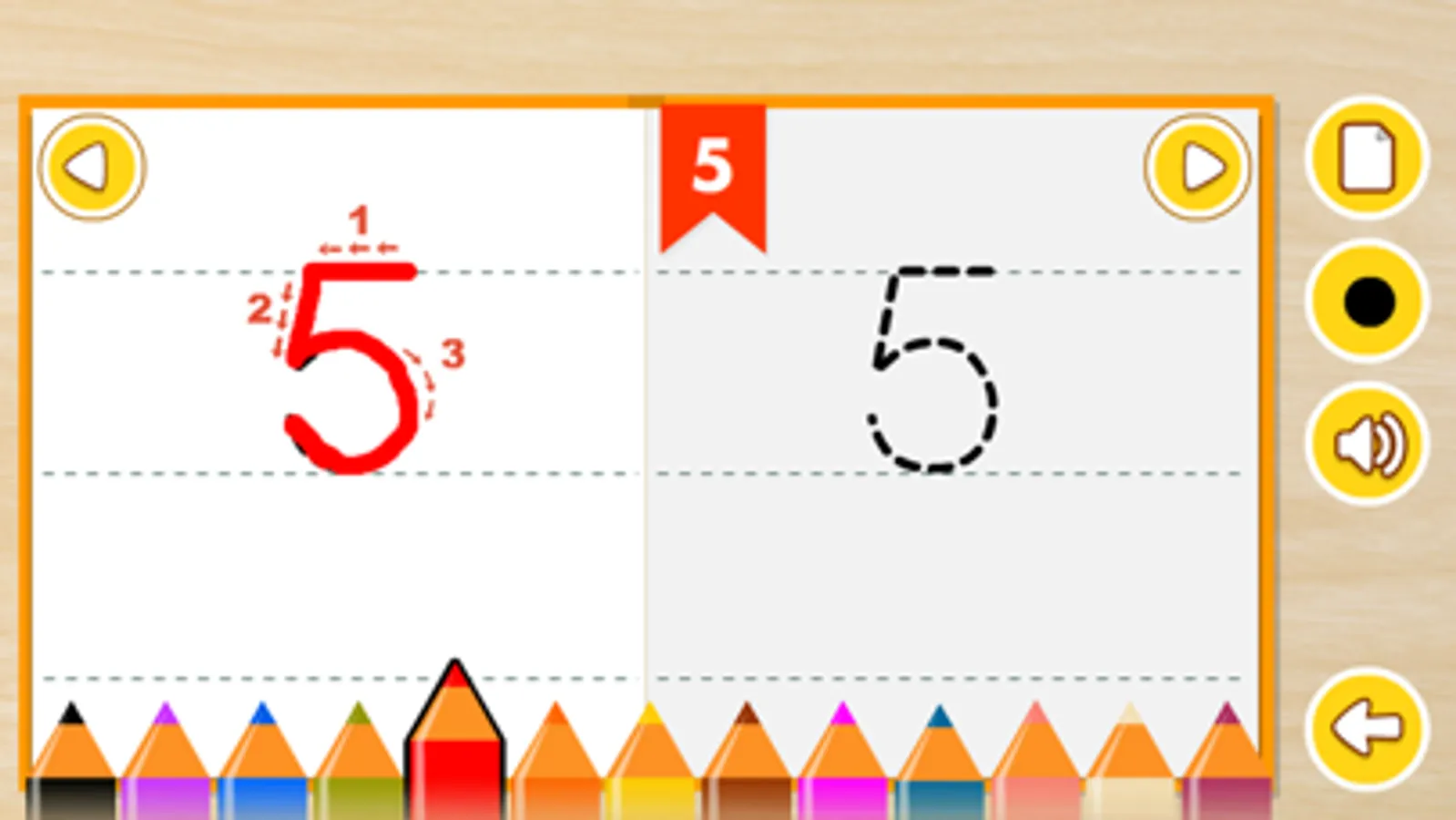 Apprendre à écrire des chiffres: L’application fournit un programme intégré pour apprendre à écrire des chiffres Français dans lesquels l’utilisateur peut écrire directement à l’écran, à l’aide de sa main ou à l’aide d’un écran à tablette à stylet, donne également la possibilité de changer la couleur de la police, l’épaisseur du trait, d’apprendre à écrire et à écouter directement la prononciation du personnage.