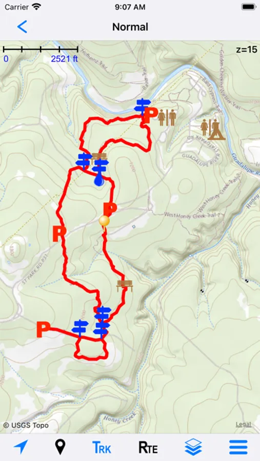 If you are confused by intersecting trails, you can put the map into user tracking mode and orient your iPhone along either trail to determine your correct route.