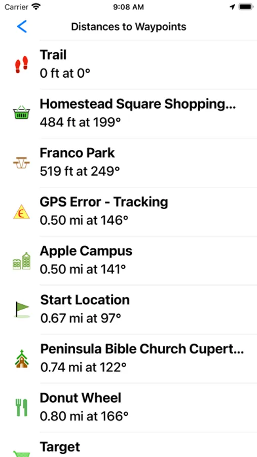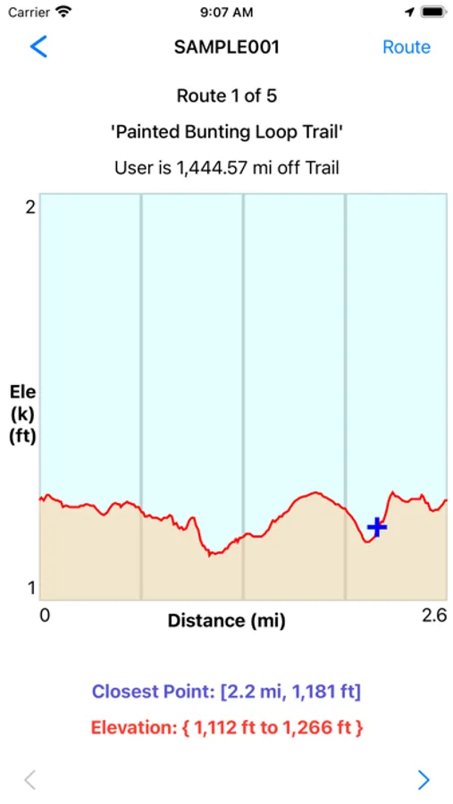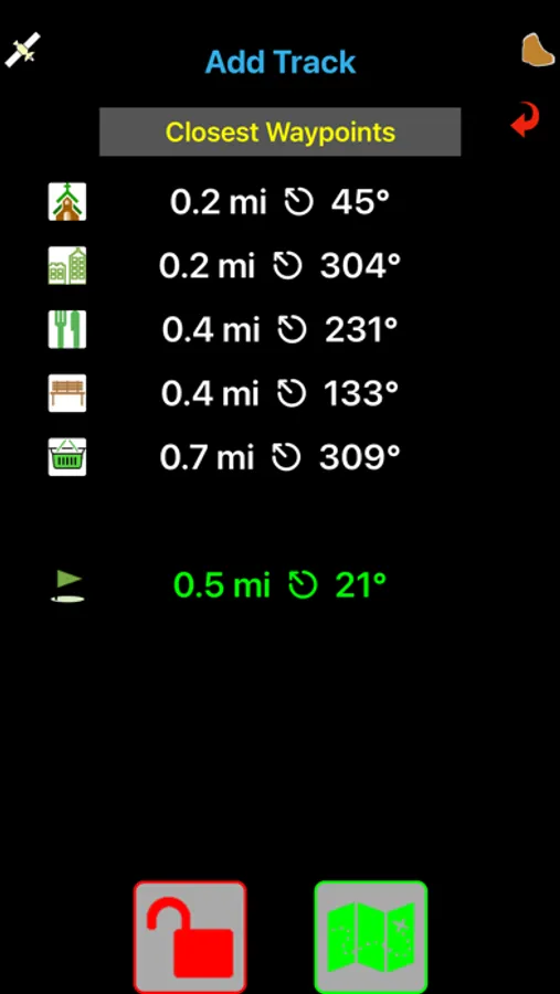 If you’ve loaded tracks, routes, and/or waypoints (we call that trail data), you can get the distance/bearing to the nearest point on the trail at any time or the distance/bearing to any of your waypoints.