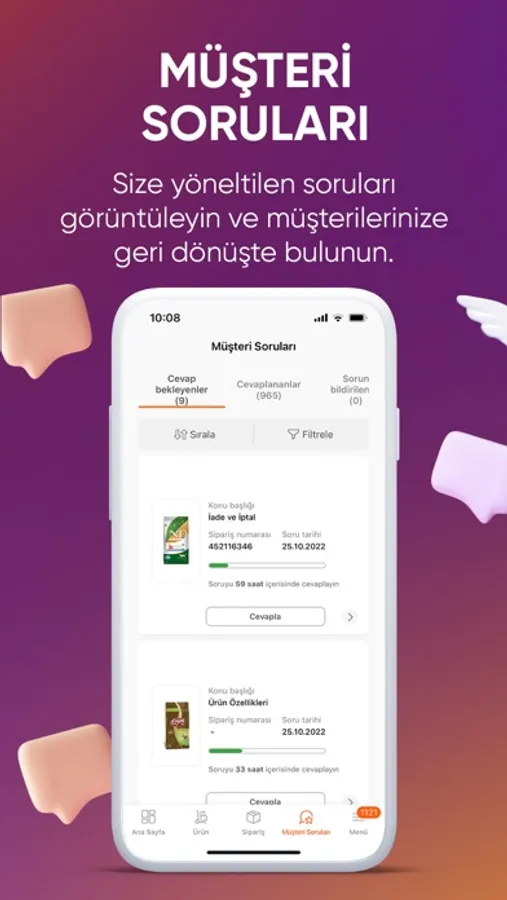 Müşteri sorularınızı görüntüleyebilir, anında mobil uygulama üzerinden yanıtlayabilirsiniz.