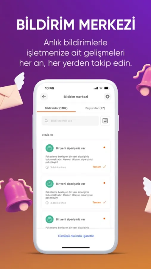 Anlık bildirimler ve duyurular ile işletmenize ait gelişmeleri takip edebilirsiniz.