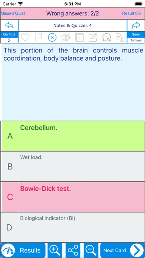 7- the wrong answered quizzes will be automatically selected for future review.