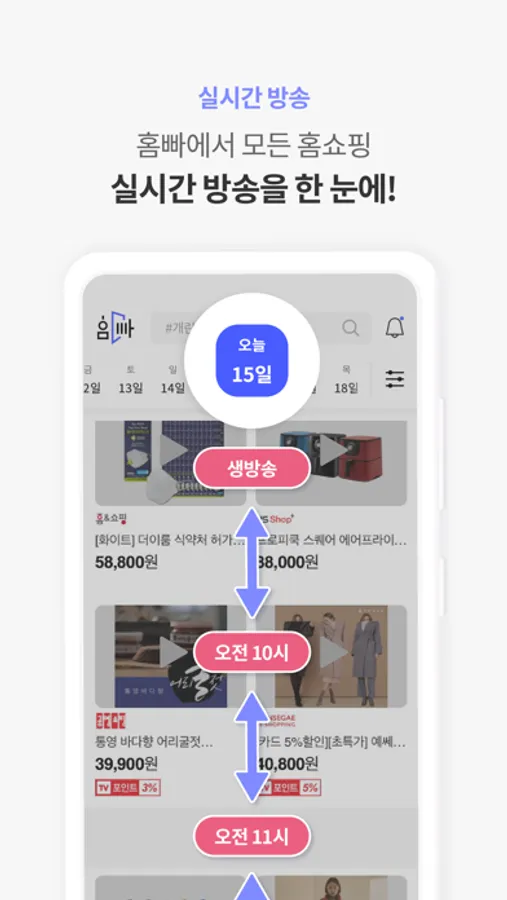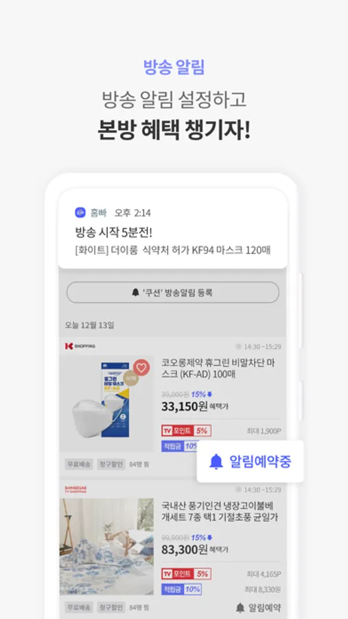 놓칠 수 없는 홈쇼핑 본방! 방송시간 알림으로 방송시간을 놓치지 마세요!