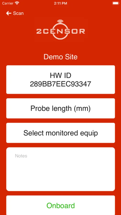 The 2Censor app enables fast on-boarding of monitoring devices through NFC and manual ID entry.