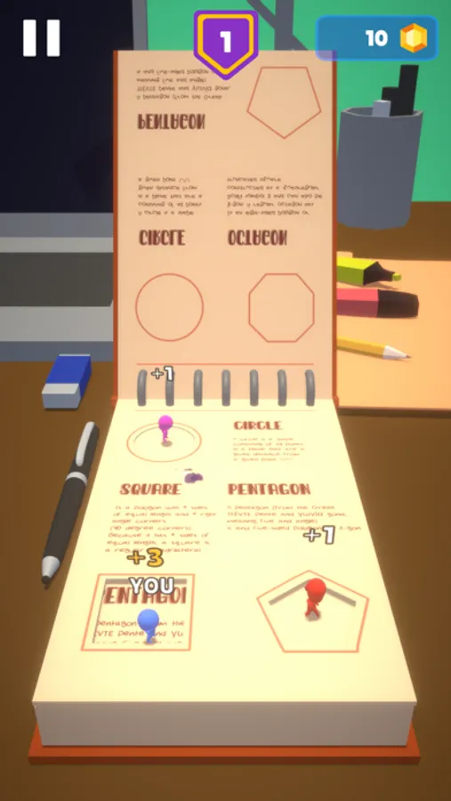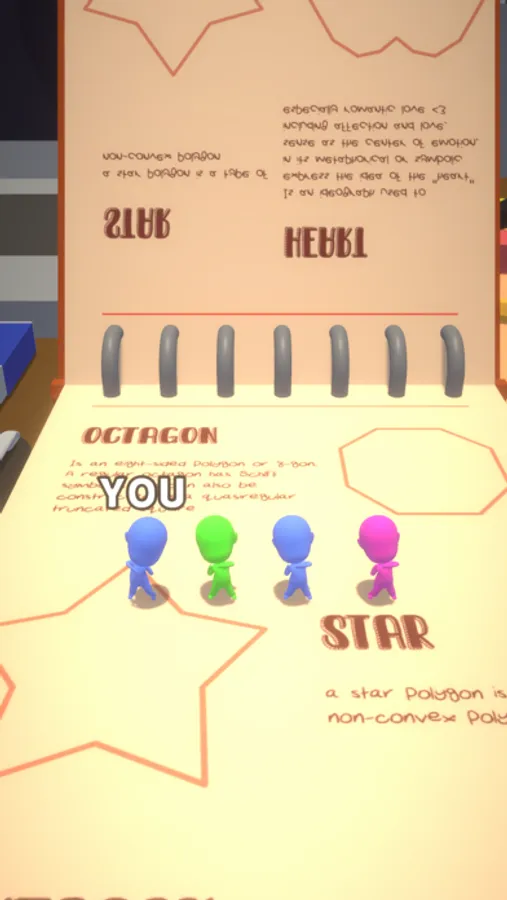 Run under the cut-outs to avoid being smashed between the falling book pages.