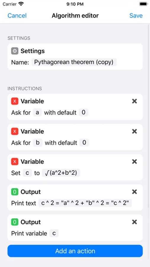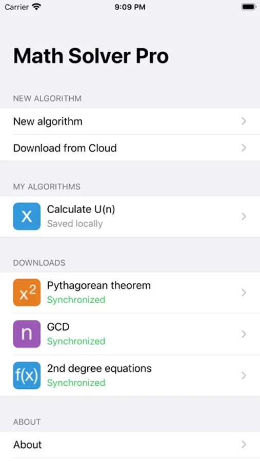 - Save your algorithms on your device, share then on the Cloud, or download ready-to-use algorithms shared by other people