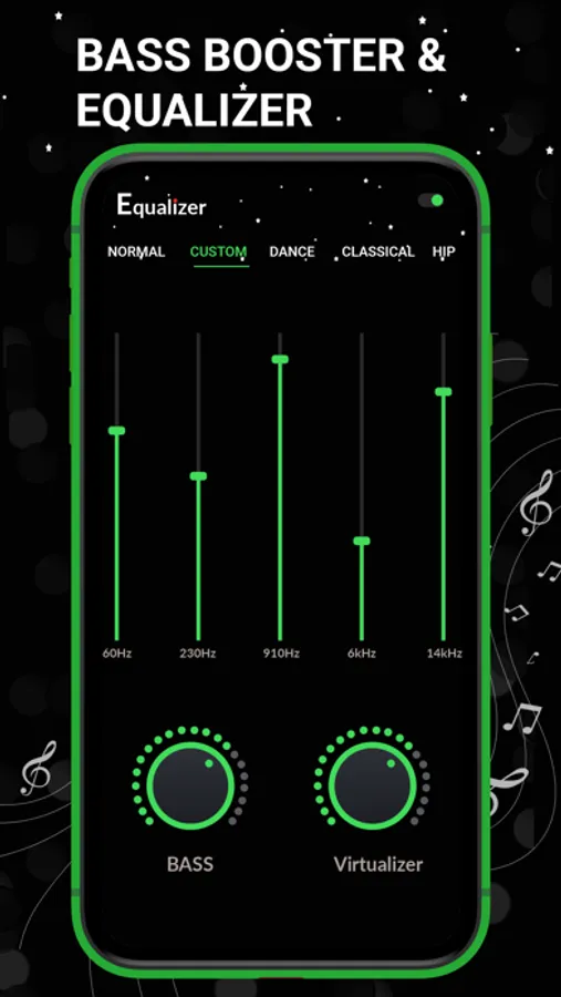 Ω Equalizer featuring bass boost, reverb effects, and more.
