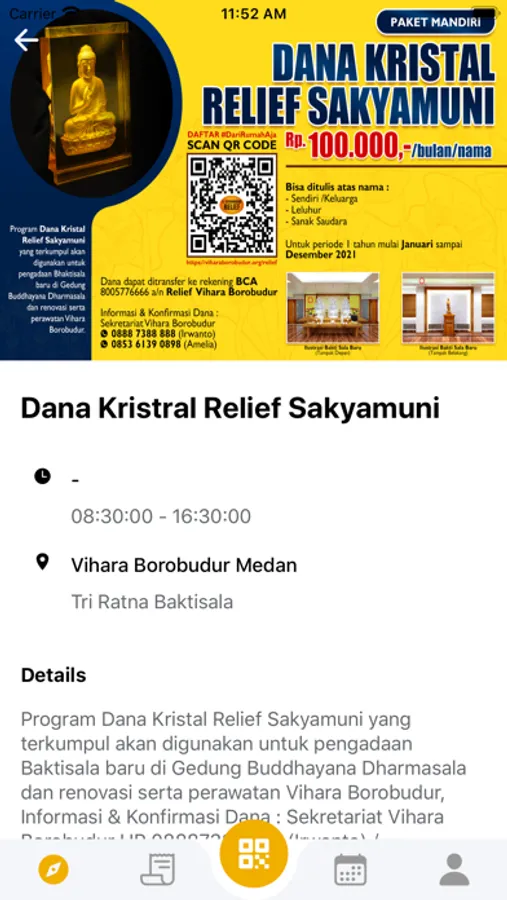 This Application is used by Buddhist Community from Vihara Borobudur Medan for record their activities in each Vihara 's event, for register to join the Vihara 's events, for do some generosity and donation and for get some information of the Vihara 's Events