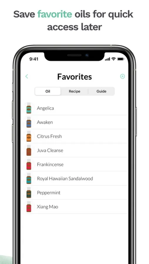 • FAVORITING: Save oils and recipes as your favorites for quick and easy access later.