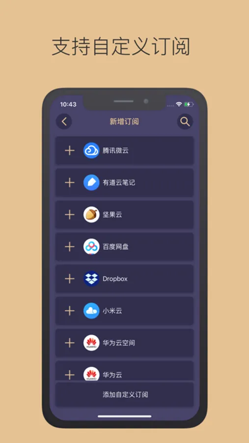 你可以从服务列表中选择自己已订阅的服务,也可以添加自定义服务。