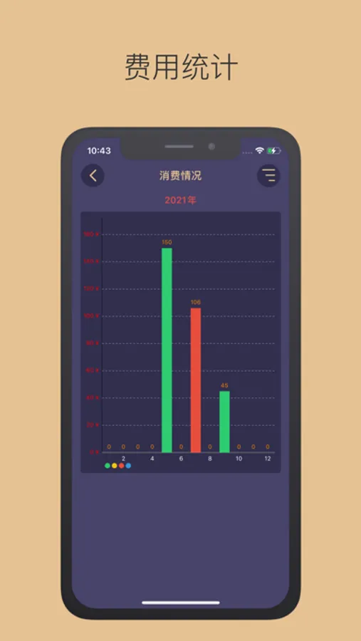 费用总览,可视化柱状图,按年查看需要付费的日期。