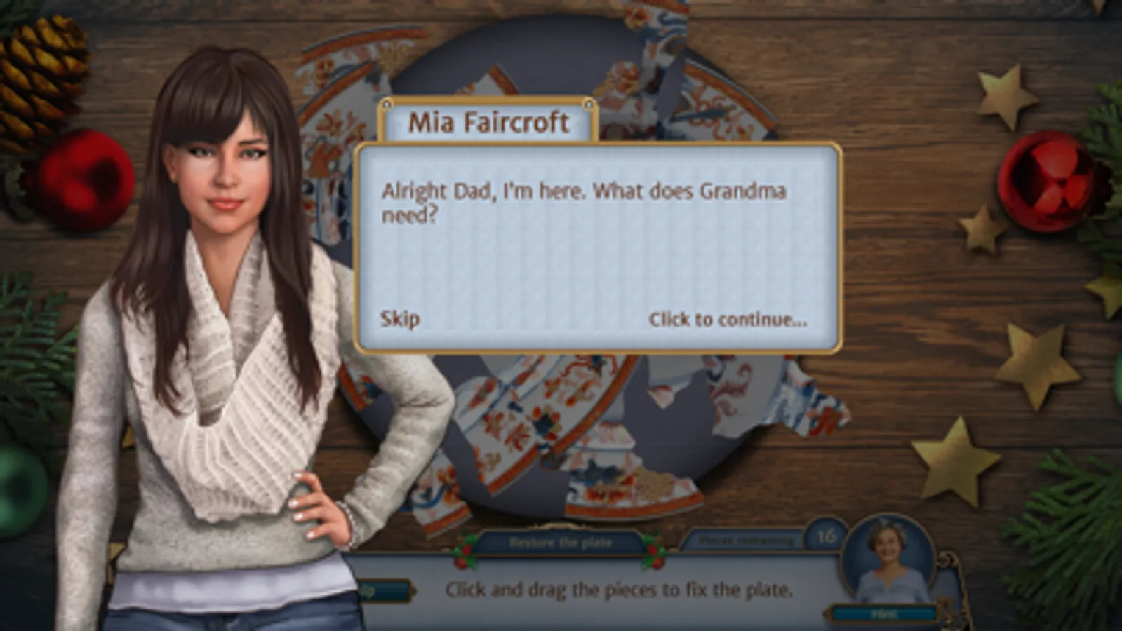 Mia Faircroft is Home for Christmas! Explore her hometown in this wonderful Hidden Object game, perfect for the season. Search through detailed locations, fix up worn antiques, and save the holidays for the community of Mikamaw Point!