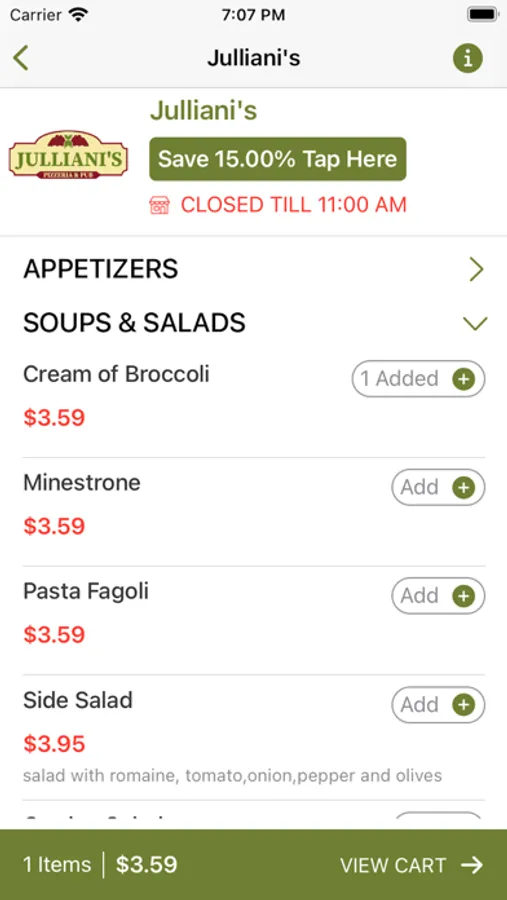 1. Get the Julliani's Online Order app and conveniently order from anywhere on your iPhone.