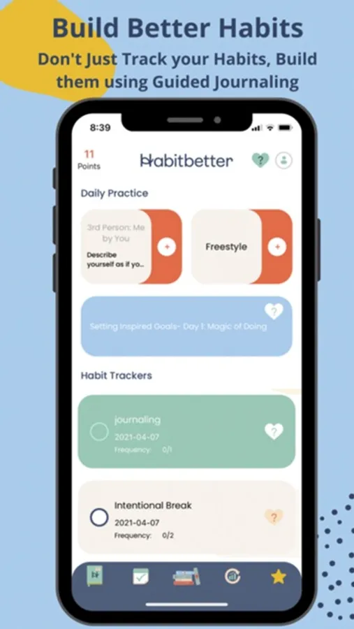 Habitbetter doesn’t just track habits, it GUIDES behavior. We use journaling to increase your self-awareness and self-efficacy so that you develop the habits that will optimize your unique life.
