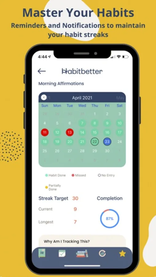 Our app offers daily journal prompts that will move you closer to achieving your goals, along with easy tracking, rewards for your progress, courses to teach you how to get ahead, and so much more. Every time you open the app your stress levels will come down and your motivation will skyrocket. You have the power to change your life, one habit at a time.