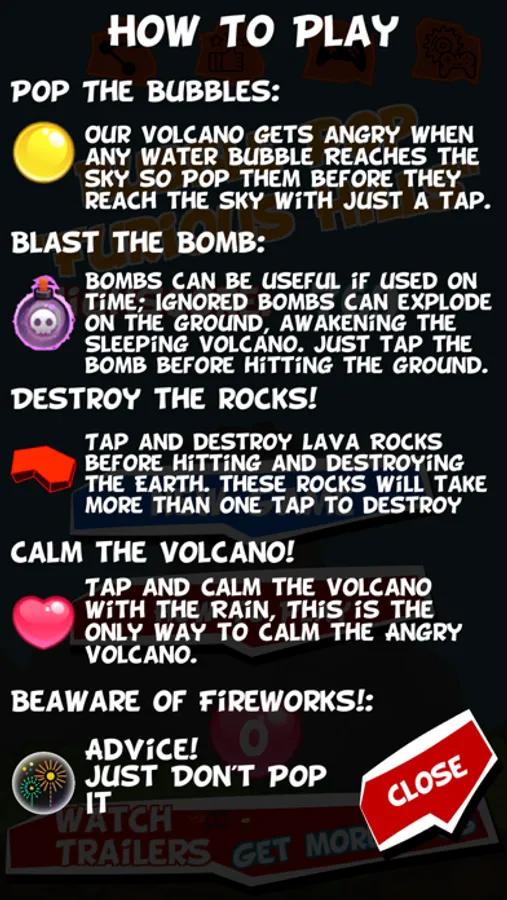 - Pop the heart blinking bubble as it will bring more rain and cool down the angry volcano.