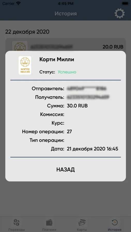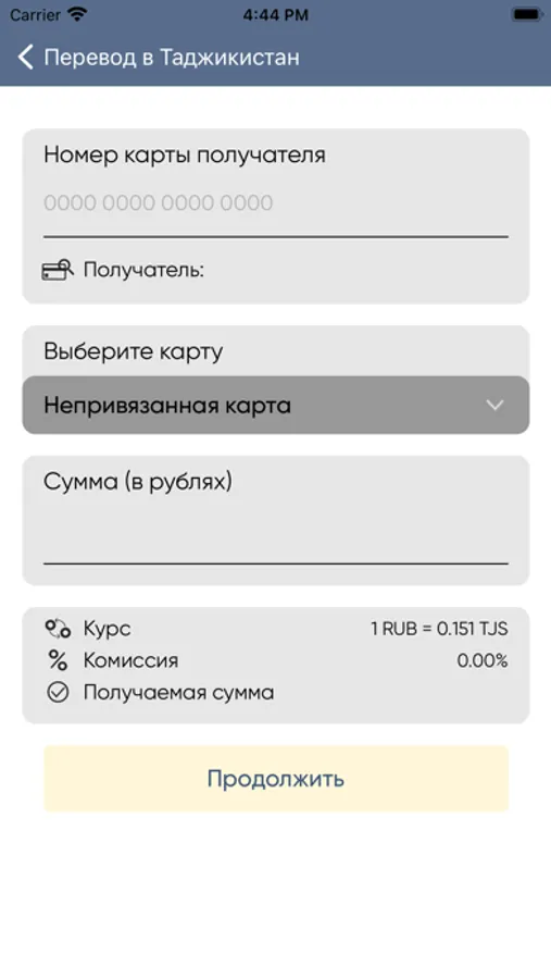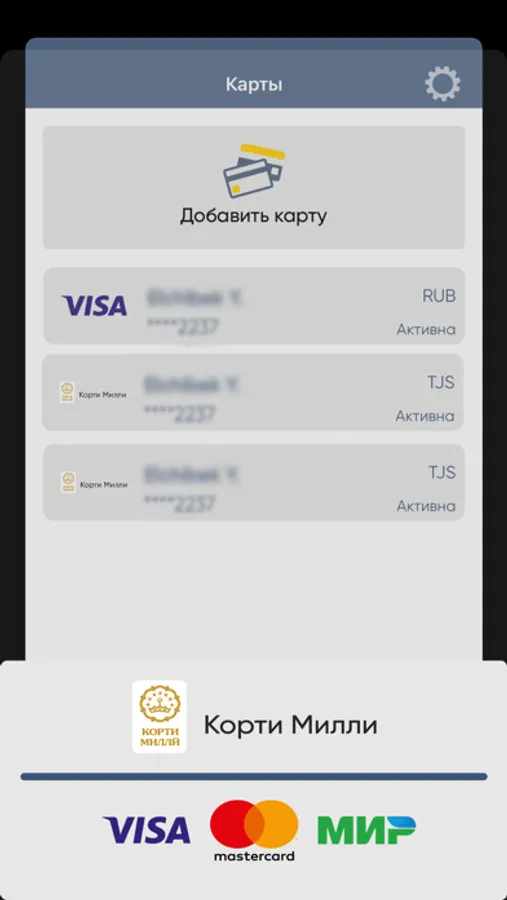 Приложение позволяет осуществлять переводы в рублях РФ на карты Корти Миллӣ любого банка Таджикистана и карты Visa Cпитамен Банка.