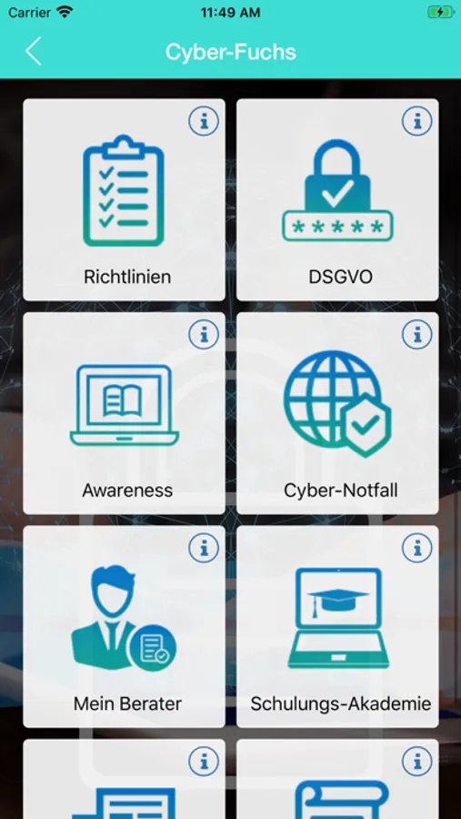 Aktuell umfasst die App folgende Module: Cyber-Fuchs