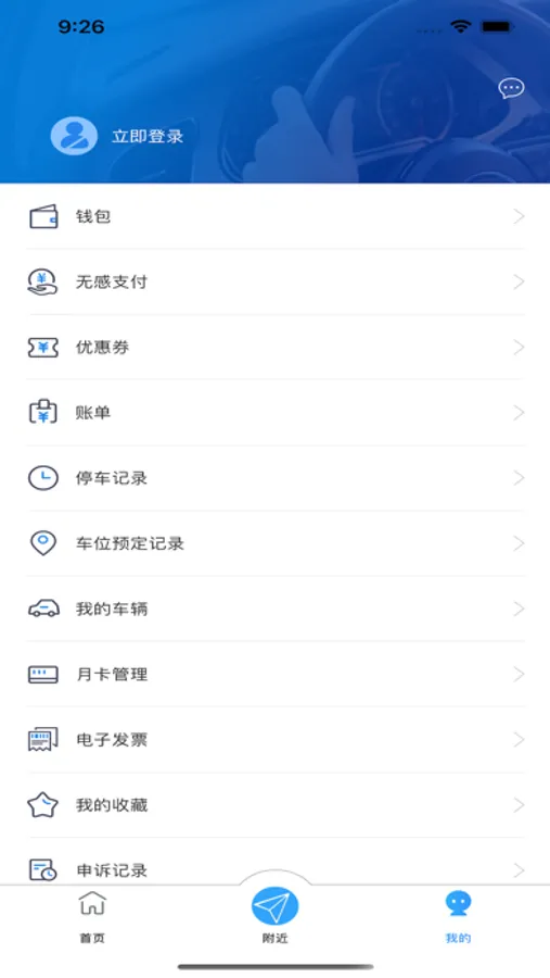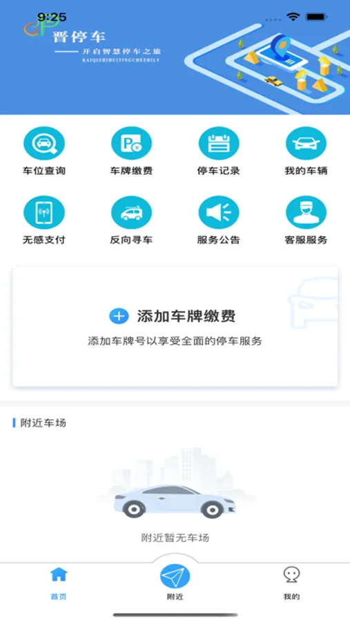 晋城市新一代智慧停车应用,集路内外停车一体化管理,功能包含路内停车缴费、路外停车缴费、查询附近车场、添加车辆、办理月卡、查询停车记录、开取电子发票等一系列便民停车功能