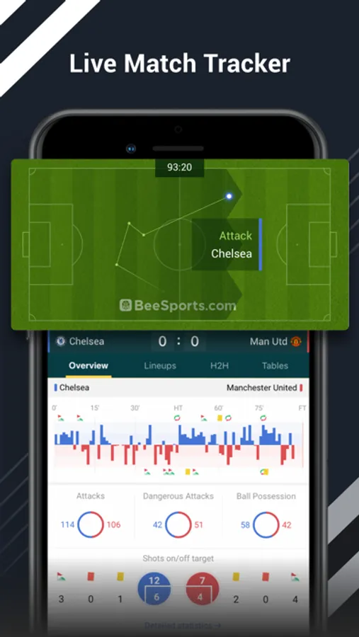 Live Tracker - Match live with tracking the ball, score and action.