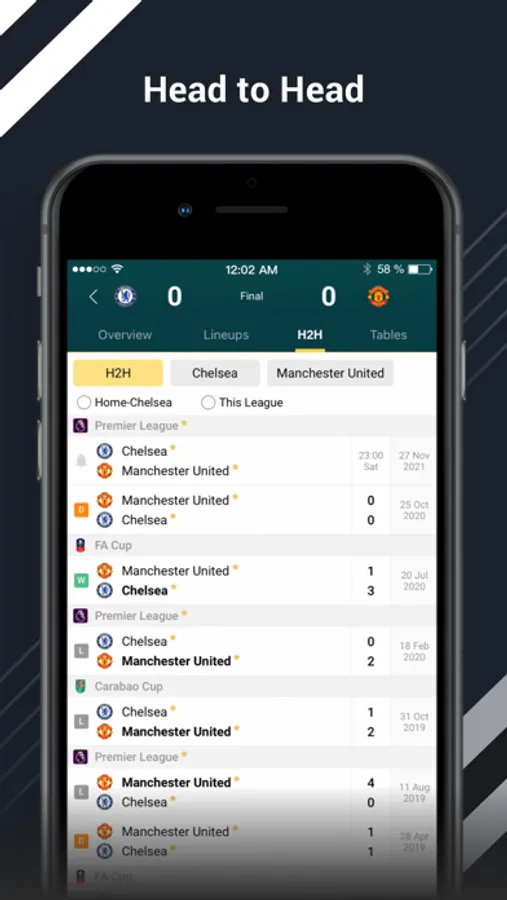 H2H (Head to Head) - Historical clashes between the two teams and recent forms.
