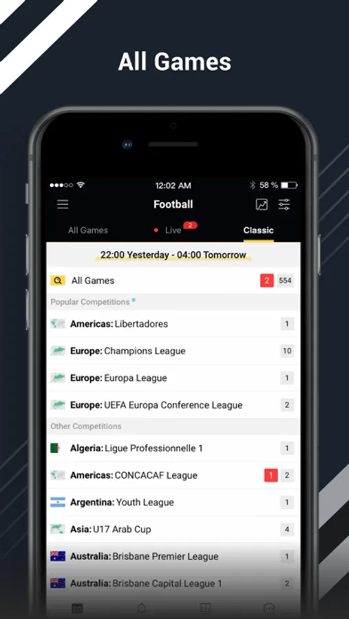 Bee Sports covers almost any live scores and stats of football leagues in the world (more than 210 countries and regions). You can follow your favorite matches through the favorites function, such as UEFA Champions League, English Premier League, La Liga, Bundesliga, Serie A, CONMEBOL Libertadores, and Campeonato Brasileiro Série A. You can also add your favorite teams to favorites, for example: Manchester United, Chelsea, Real Madrid and Barcelona.