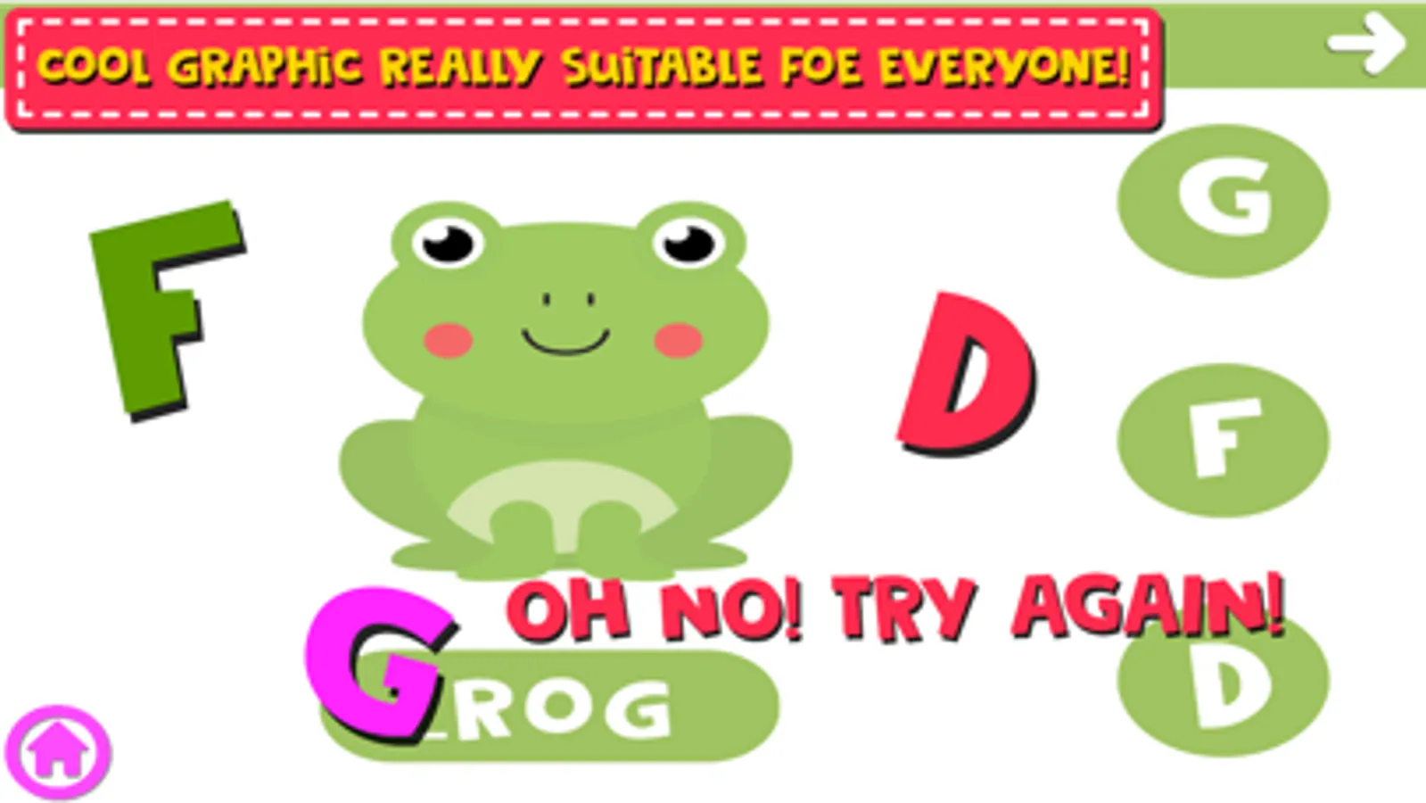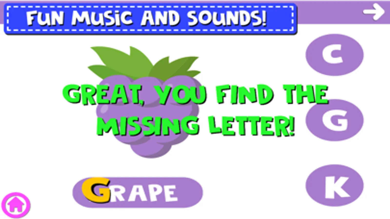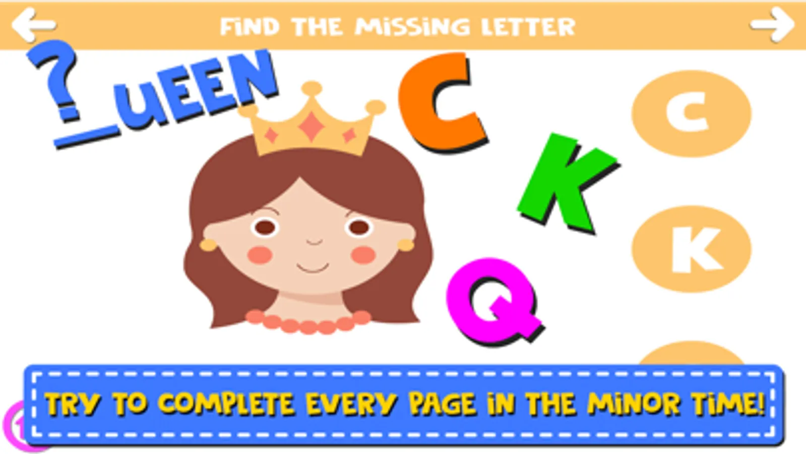 Anyway You can’t lose because it’s just a simple word letter game; also when play you can learn the correct name of the objects and the alphabet letters.