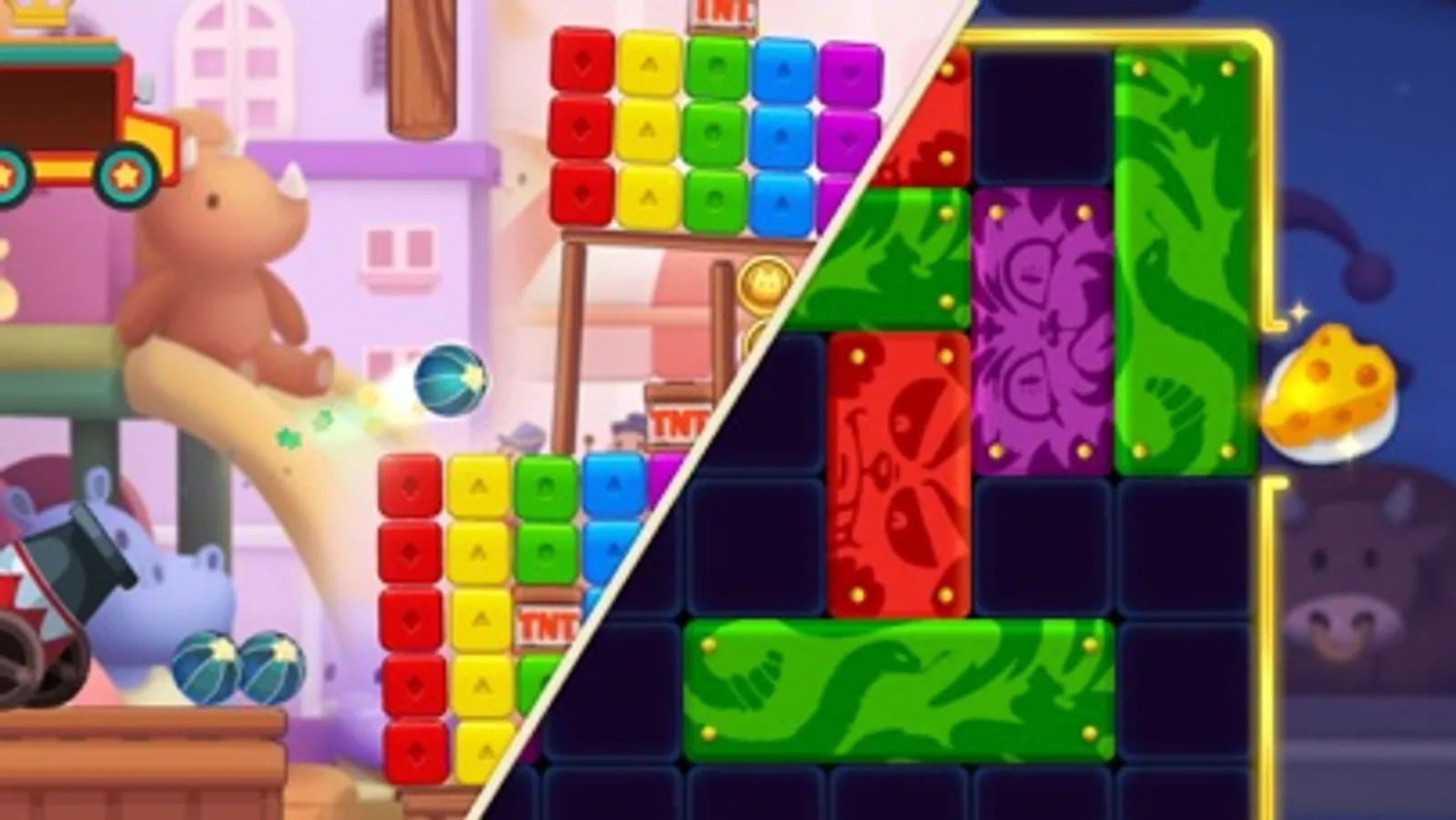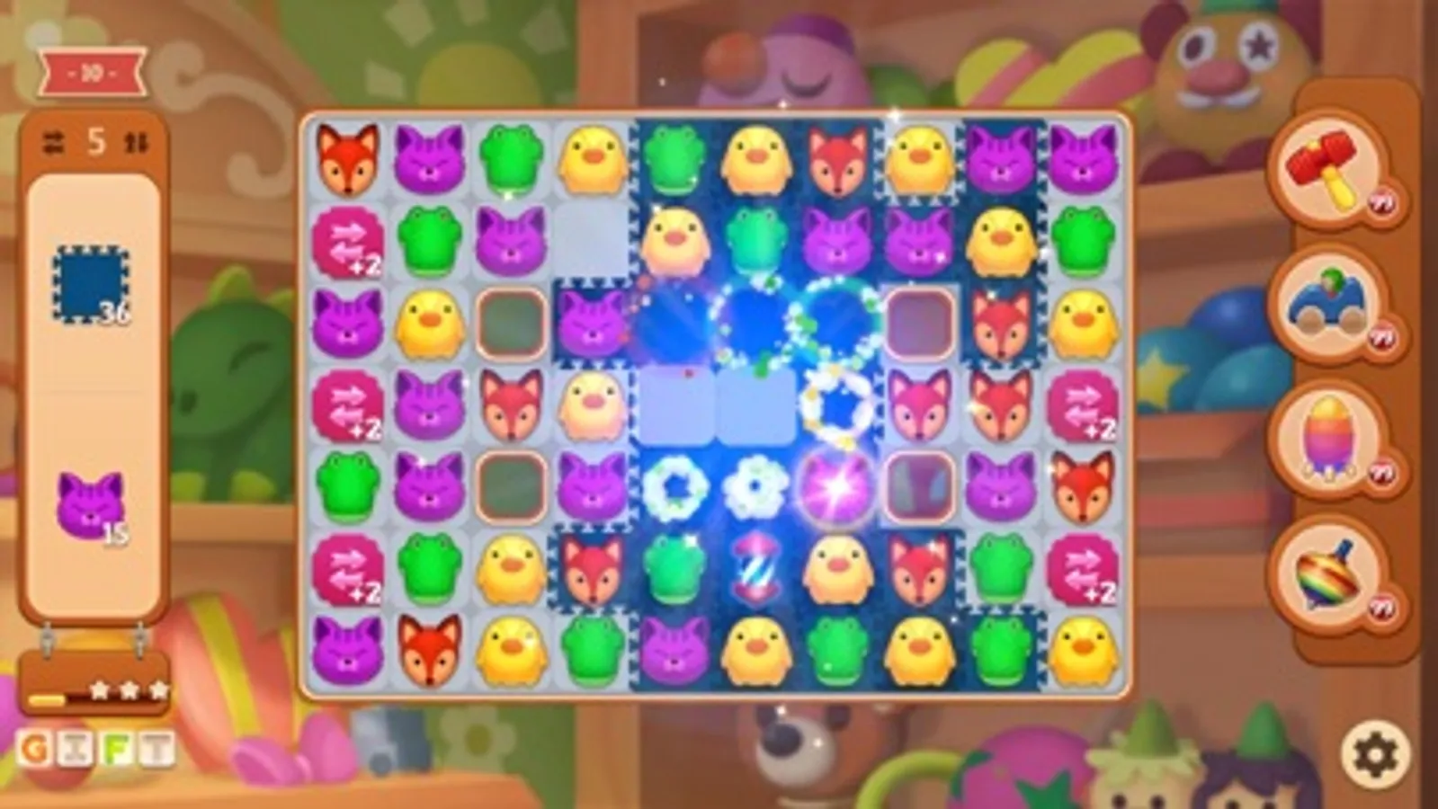 A fantasy toy island where you can enjoy 2 types of puzzle games at once, collecting and popping cubes in the same colors as in Match 3 with cute dolls.