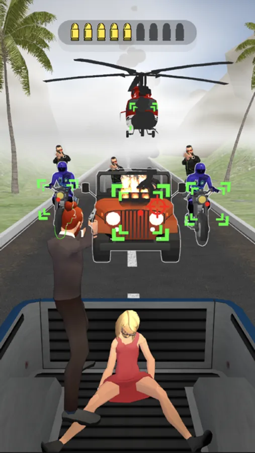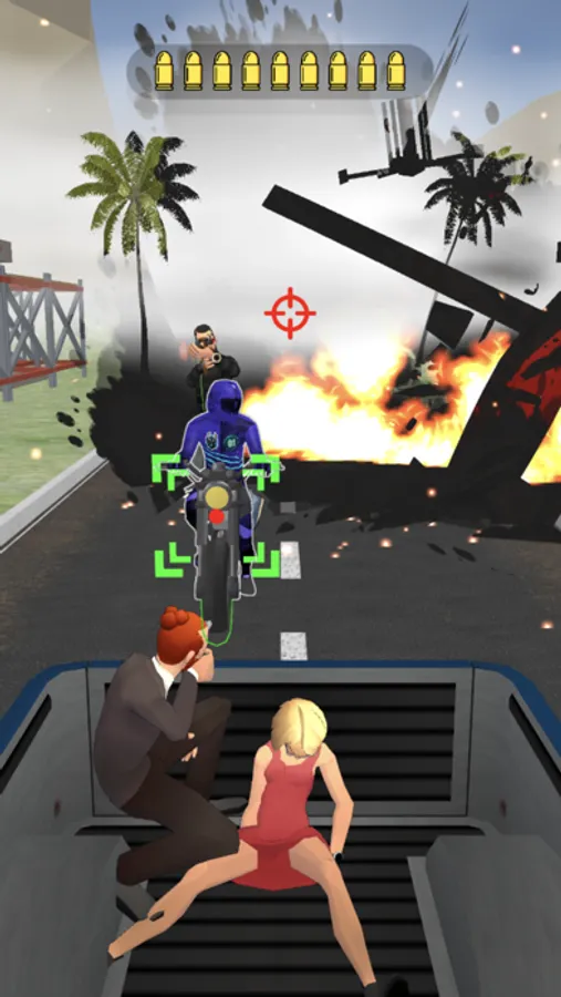 Are you ready to save your girlfriend from the bad guys? Helicopters, cars, engines, they all want to fight you. Fight them with your guns and save your girlfriend!