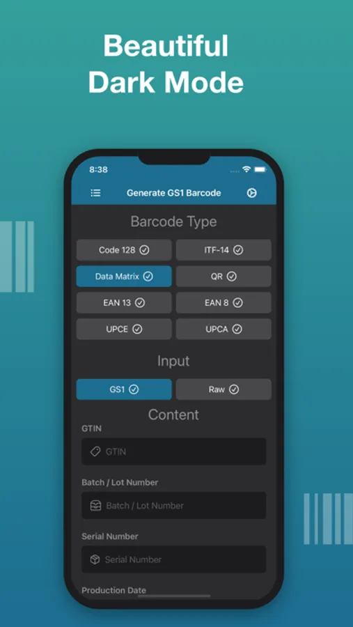 The handy Barcode Generator that allows you to generate GS1 and other Barcodes at your fingertips, without the need of knowing how the content is generated. Simply fill out the form with all the GS1 Application Identifiers desired.