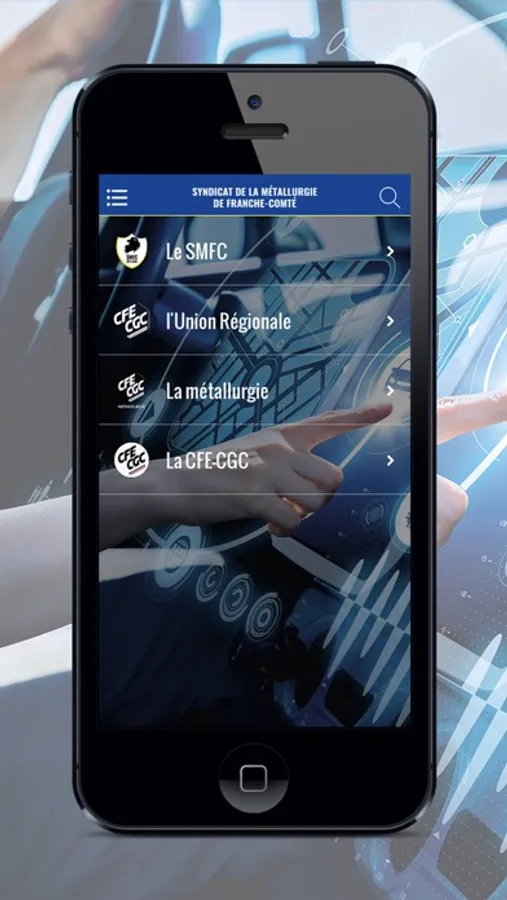 Actualités, Formations, Handicap, retraite, contact, espace dédié à nos adhérents. L'application de la métallurgie de Franche Comté CFE-CGC vous donne les informations pour suivre et décrypter l'actualité régionale ou nationale. Force de proposition, apolitique, combatif, nous sommes là pour vous aider. Techniciens, Agents de Maîtrise, Ingénieurs ou Cadres : si vous voulez rester connecté au monde du travail, vous investir dans la vie syndicale, si vous avez besoin d'un contact, de conseil, d'aide : cette application est faite pour vous. A bientôt. L'équipe du SMFC.