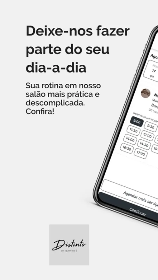 Agende seu atendimento no Distinto Hair Salón de forma simples e intuitiva, com apenas alguns cliques.