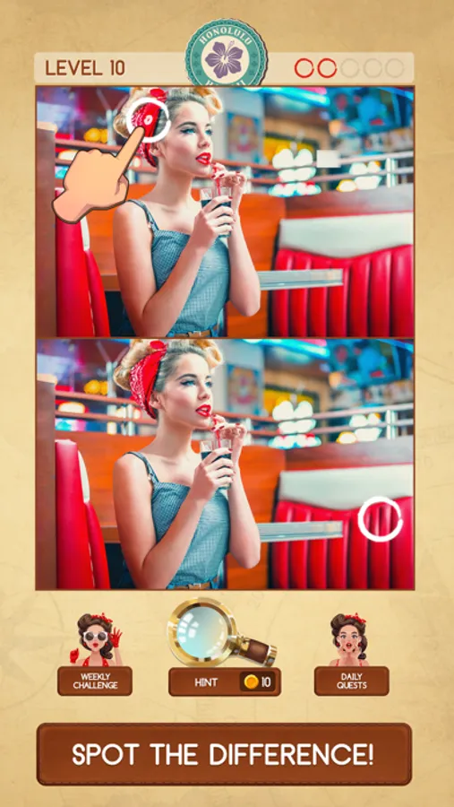 At the start, 15 photos are open. Find all the differences on them, and open the next levels. Want to open levels earlier? You can buy them with coins!