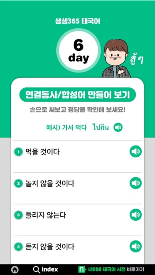 그 첫번째 스텝으로 우선순위 365단어 동사따라쓰기편으로 다음의 4가지를 명심하면서 태국어 공부를 시작해 보세요.