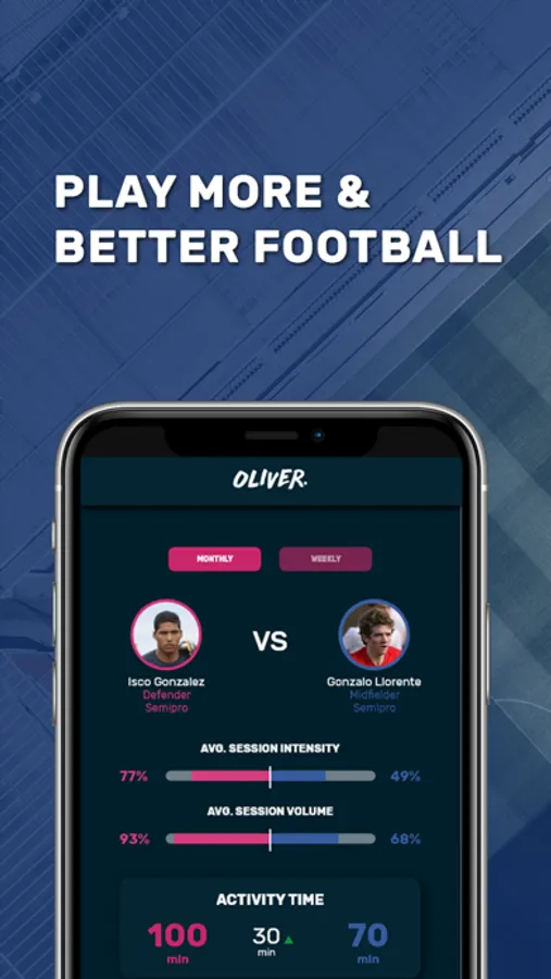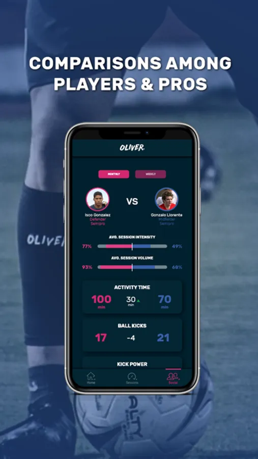 With OLIVER, you play more and better football. Measure your training, matches, and interact with the key information not only to evolve but also to prevent injuries. As we want you to have fun and keep playing, compare yourself to the community in the most entertaining way!