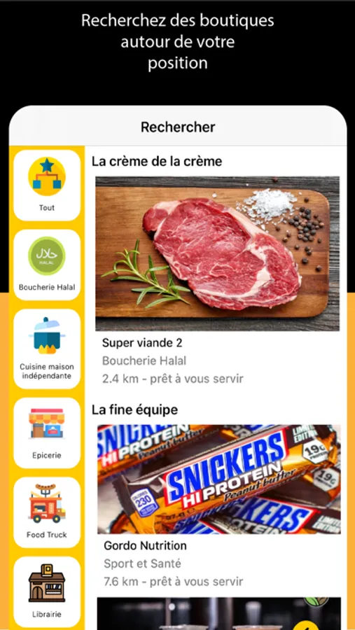 Retrouvez dans Yupiiq les commerces aux alentours de votre position et effectuez vos achats à emporter ou en livraison en toute tranquillité.