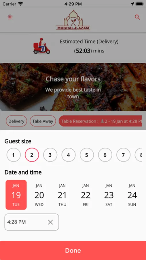 You can select between multiple options that how you want your order to be served (Delivery, Take Away or Table Reservation)