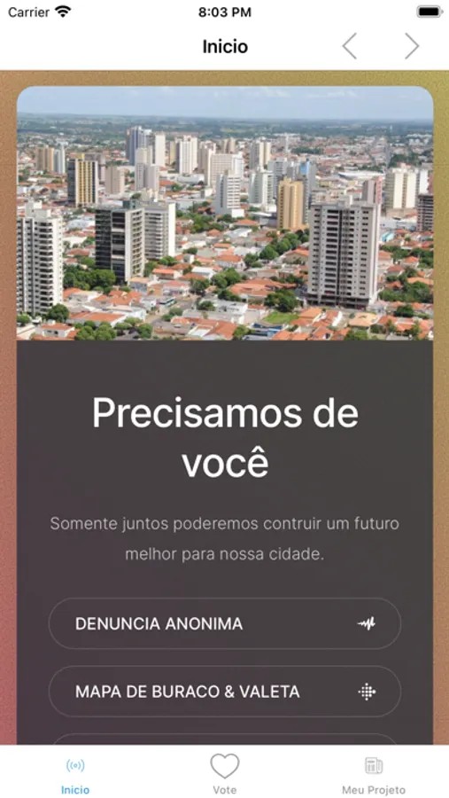 Atraves dela, a participaçao cidadã esta sendo elevada para outro nivel. Com este app voce poderá: