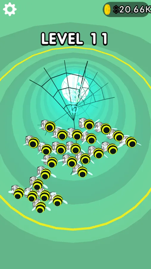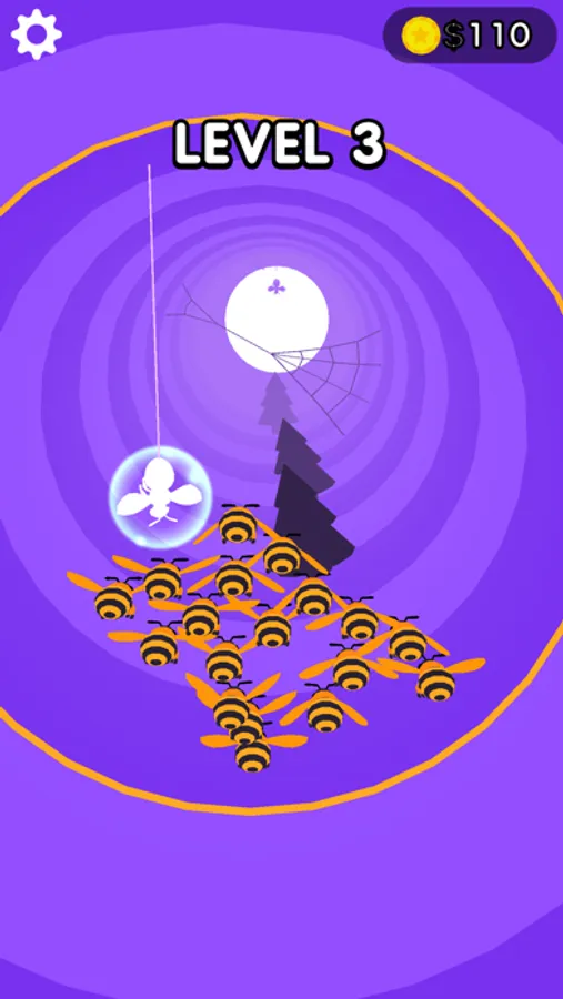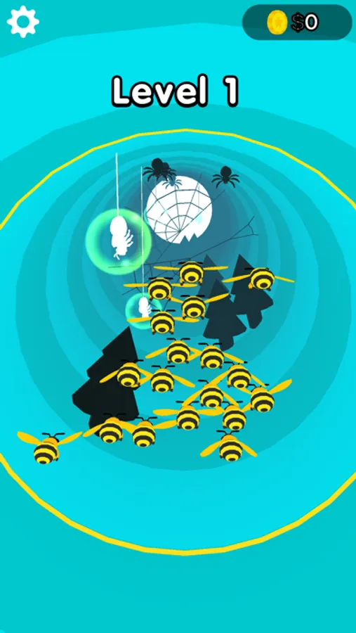 Help the bees! Your task is to collect all the lost bees into one team, but you have to bypass your enemies - evil spiders with their cobwebs, and trees, which it is better not to face.