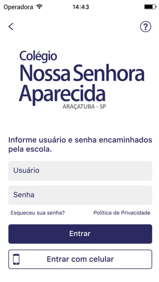 C. Nossa Senhora Aparecida! Acesse as informações da escola através deste aplicativo.