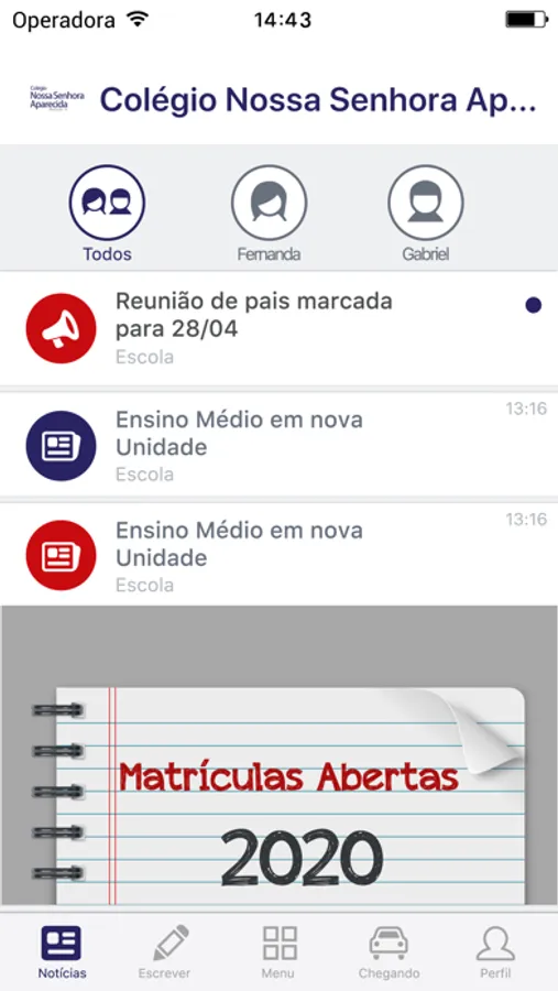 Com este aplicativo, os pais, responsáveis e professores poderão receber as últimas informações da escola, as notícias do dia a dia do seus filhos e o calendário de atividades escolares.