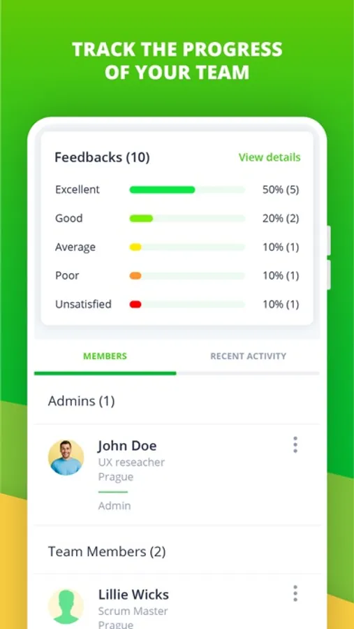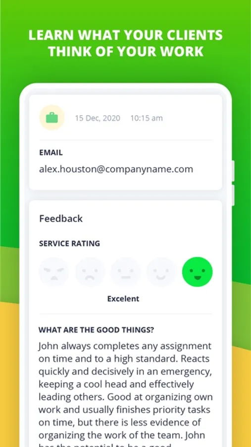 Client is king, and with WeGrow you can request feedback from internal clients (other employees in the organization) or external clients (outside the organization). Just enter the name or email for the person, and the person will receive an email, they can give feedback from their browser and you'll receive it in WeGrow. No need to install any software. Client feedback can be at the individual or team level.